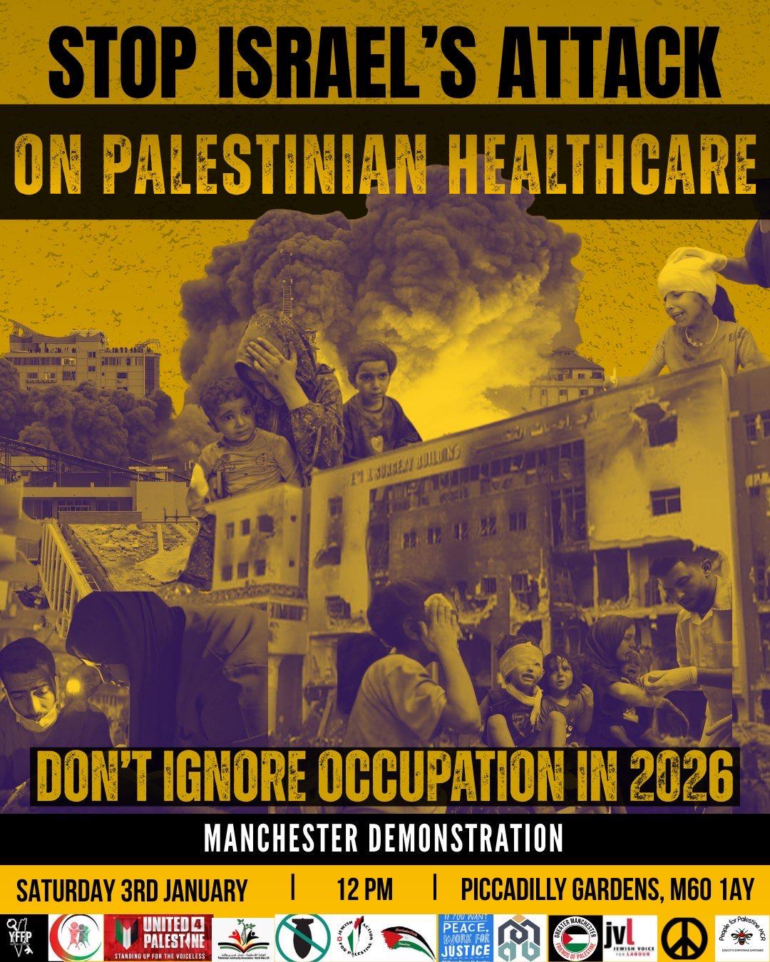In face of these atrocities, the people of Manchester must rise up in total solidarity with Palestinian health workers and the people of Gaza, to demand justice and freedom, and assert that we reject the State’s attacks on our noble movement and will only keep getting louder.