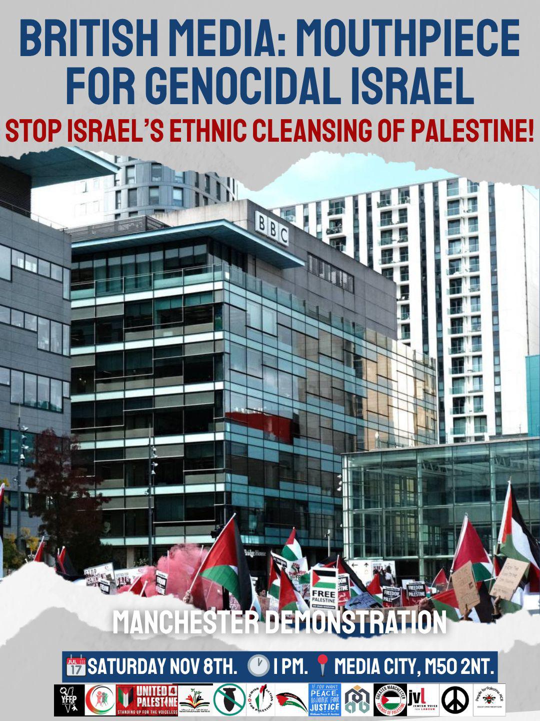 The Palestinians have deserved truth for over a century – all out this Saturday at Media City to demand that the British media do their jobs and report the reality of Palestine instead of being a mouthpiece for the Genocidal state of Israel.