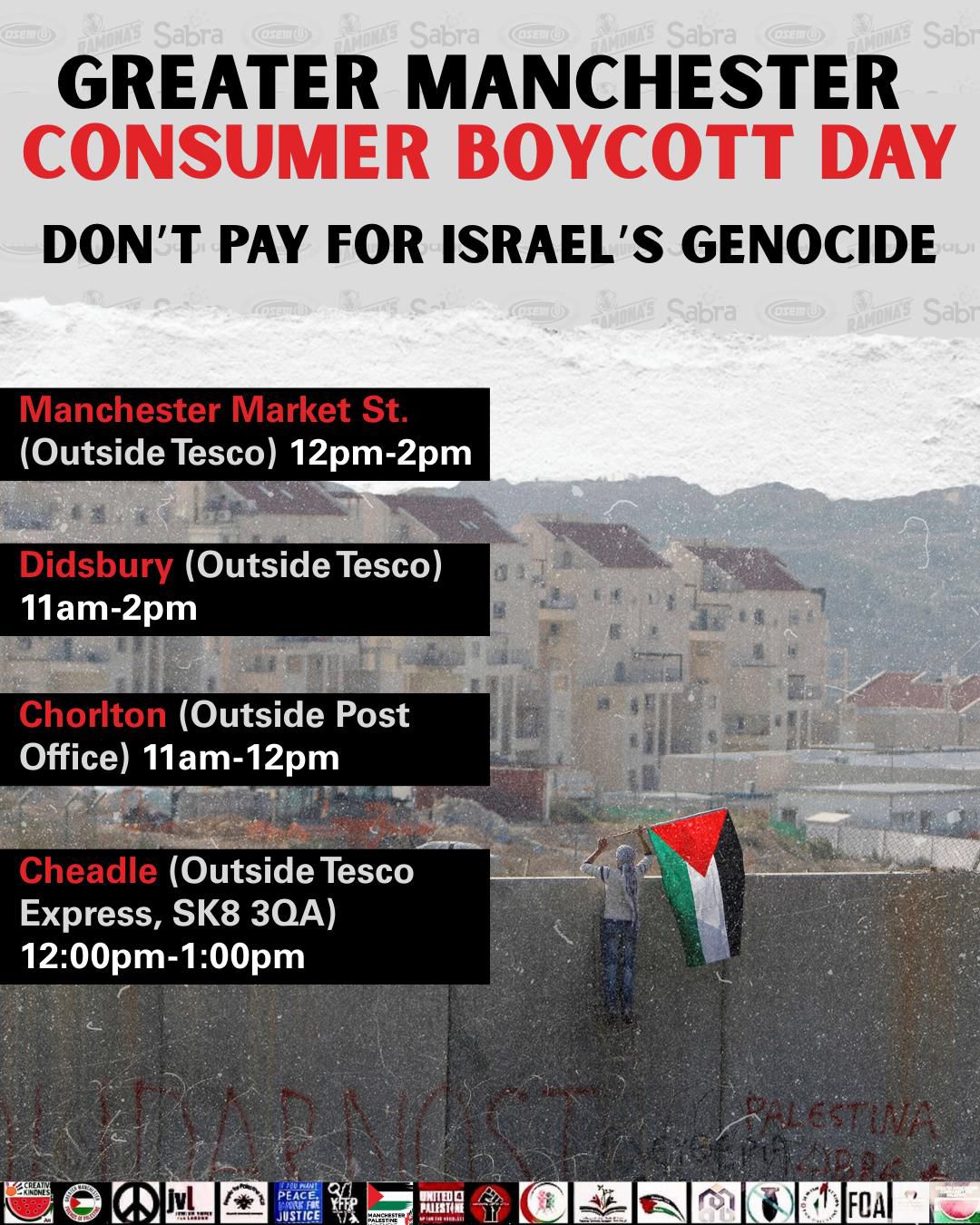 Greater Manchester Consumer Boycott Day. Don’t pay for apartheid and genocide!