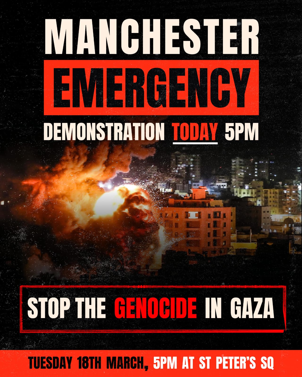 So, join us today for the emergency demo at 5pm, St. Peter’s Square, and demand an end to the genocide. A small Iftar will be provided to those fasting.