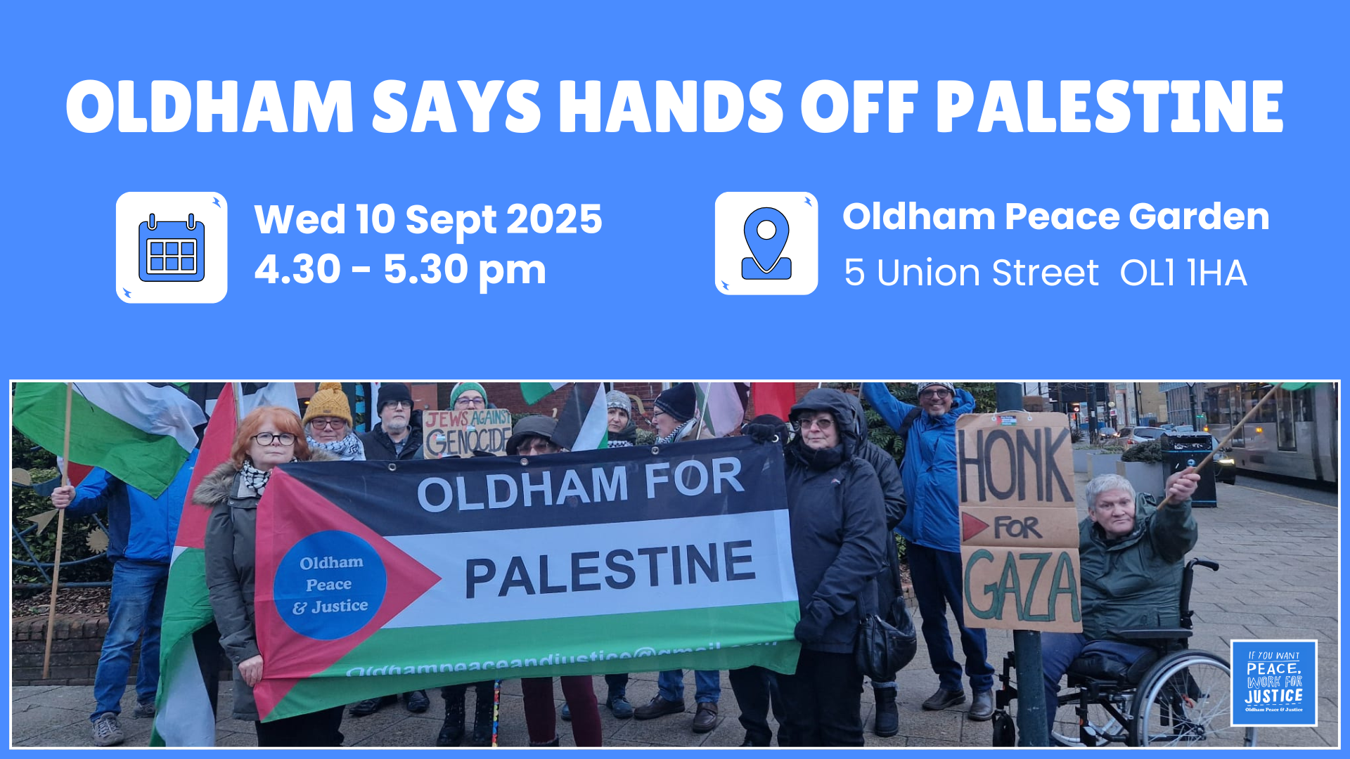 Show your support and solidarity for Palestine at the weekly vigil in Oldham!