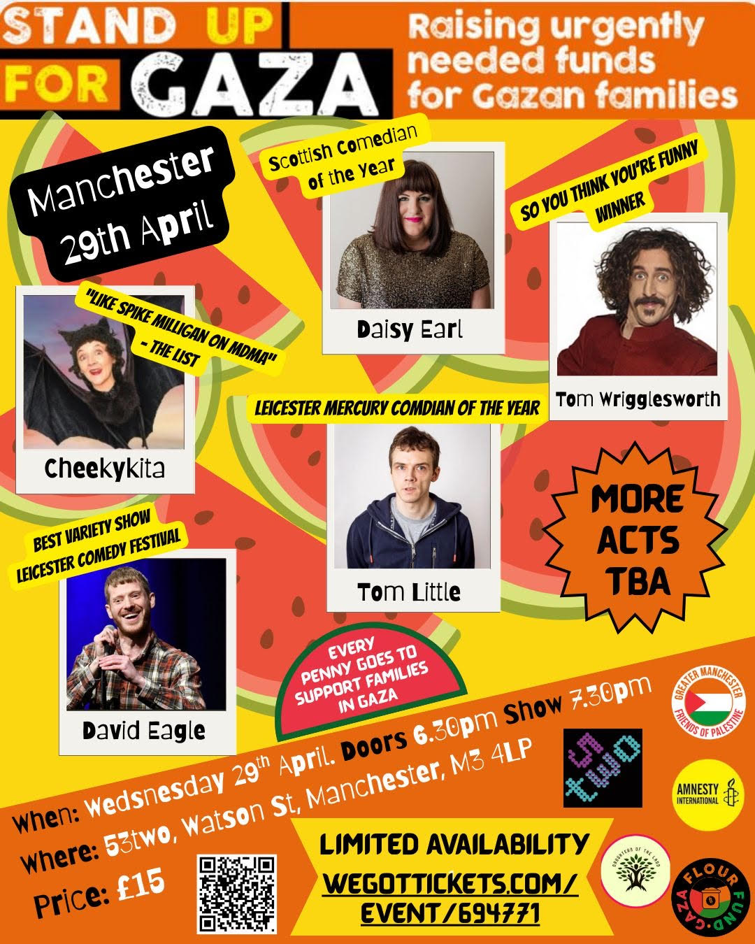 (Supported by Greater Manchester Friends of Palestine, Amnesty International, Gaza Flour Fund, and Daughters of the Land
